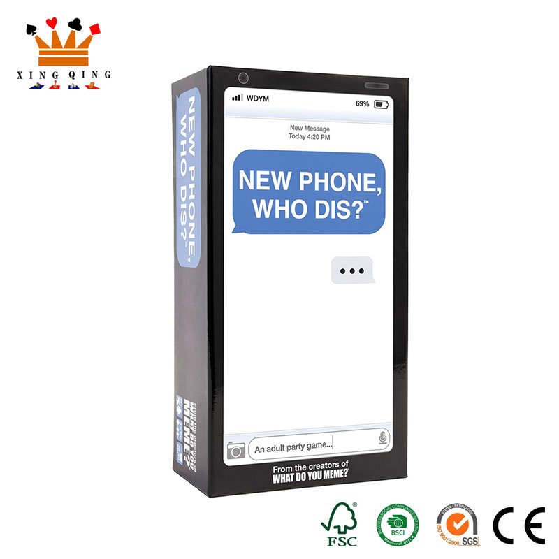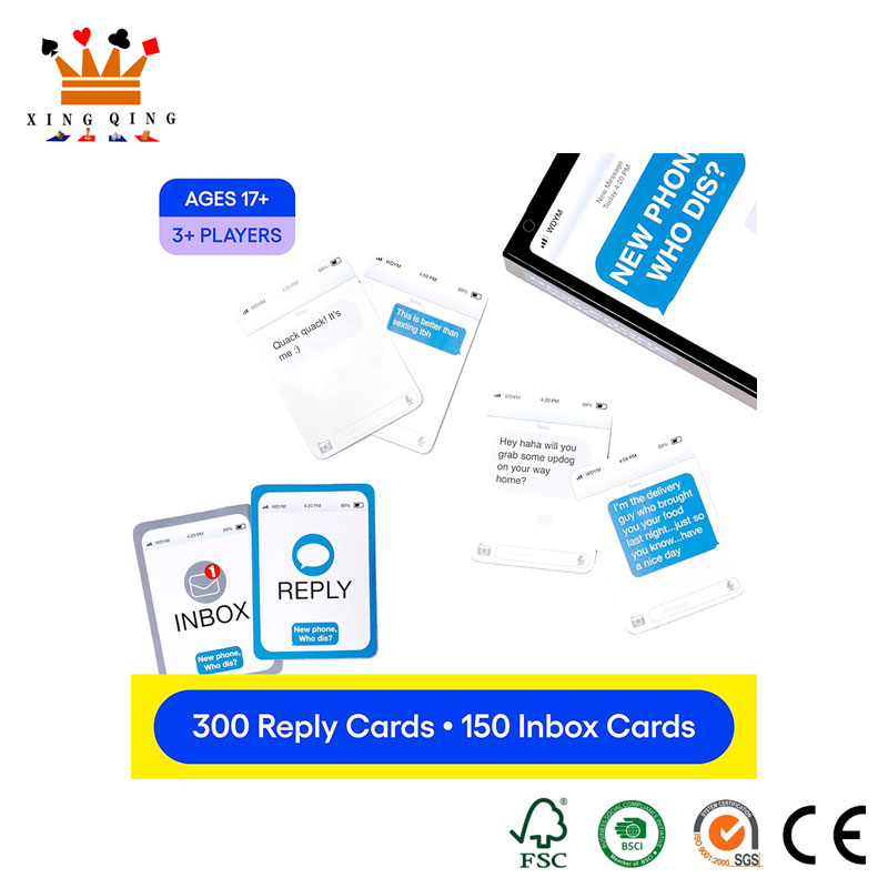 บริษัท Xingqing เป็นผู้ผลิตการ์ดเล่นกันน้ำสำหรับเกมปาร์ตี้แบบมืออาชีพ ผู้จัดจำหน่ายและโรงงานในประเทศจีน คุณภาพของเราดีที่สุดในอุตสาหกรรม มีทีมงานออกแบบเฉพาะ ทุกเดือนจะผลิตผลิตภัณฑ์ใหม่ 20 รายการ เป็นซัพพลายเออร์ของแบรนด์ใหญ่ๆ มากมาย